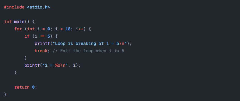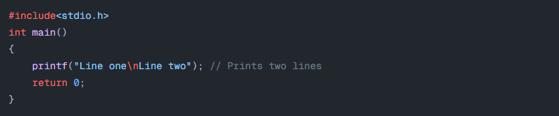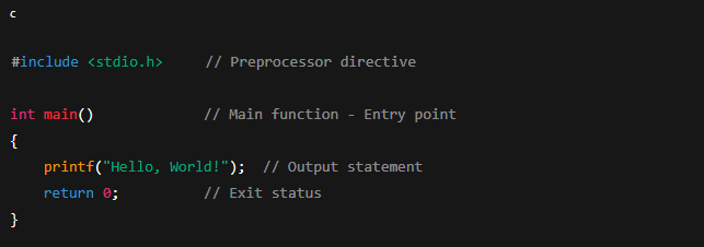 • #include <stdio.h>: Tells the compiler to include Standard Input Output library.