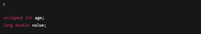 • Pointer – Stores address of another variable (e.g., int *ptr;)